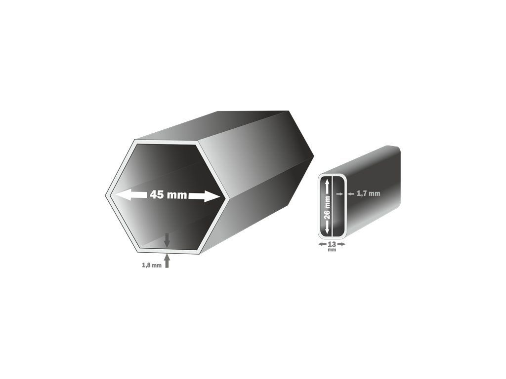 | Průřez nohy: | 45 mm (Hexagon) | Tloušťka stěny: | 1,8 mm |