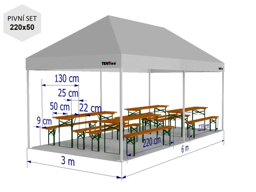 | Rozměr stanu: | 3x6 m /6 noh |