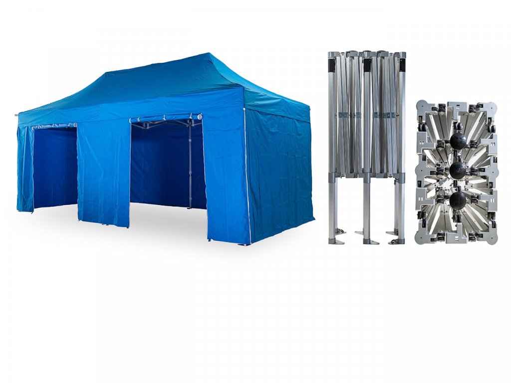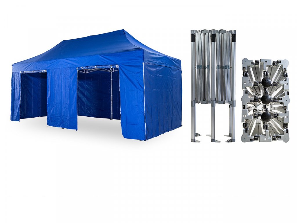 1x střecha + 4x boční plachta – 3x plná, 1x s dvěma dveřmi