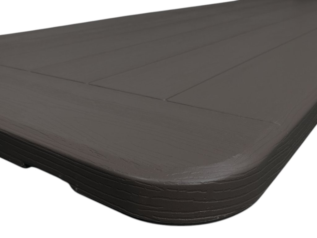 Skládací cateringový stůl 180x76 cm v imitaci dřeva intenzivně využíváme již dvě dekády na naší půjčovně https://www.party-stan.eu/, kde dostává pořádně zabrat! Musí vydržet více než 200 instalací, manipulací a přeprav ročně. Velmi úspěšně obstává! Drží! Důvod? Dlouhá léta spolupracujeme s jedním jediným výrobcem, kterému předáváme naše zkušenosti z oblasti pronájmů v podobě požadavků na technické provedení výrobku. Náš výrobce nepoužívá recyklát pro výrobu vrchní plastové desky, nýbrž čistý, zcela nový POLYETHYLEN s vysokou hustotou. Naše stoly a židle NEJSOU vyrobené z recyklátu, oproti jiným konkurenčním výrobkům. Pro potřeby půjčovny nelze disponovat tím nejlevnějším s nízkou odolností, tím, co je kdesi v Asii vyrobeno z rozemletých pet lahví! Vyžadujeme maximální možnou odolnost materiálů. Vše, co sami vyrábíme nebo prodáváme, je používáno v našem rental byznysu.